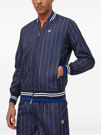 striped logo jacket Highlights - Navy blue - Striped pattern - Logo patch - Zip fastening - Ribbed hem - Ribbed cuffs Imported Composition Polyester 100% Washing instructions Read Manufacturer Guidelines