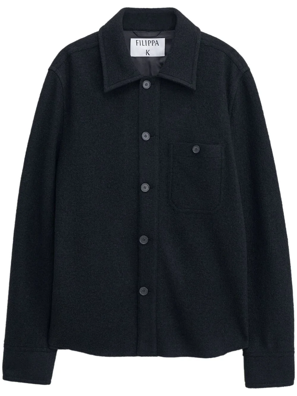 boiled-wool shirt jacket Highlights - Black - Wool blend - Boiled wool - Front button fastening - Spread collar - Long sleeves - Buttoned cuffs - Chest patch pocket - Full lining - Straight hem Imported Composition Wool 52%, Viscose 48%