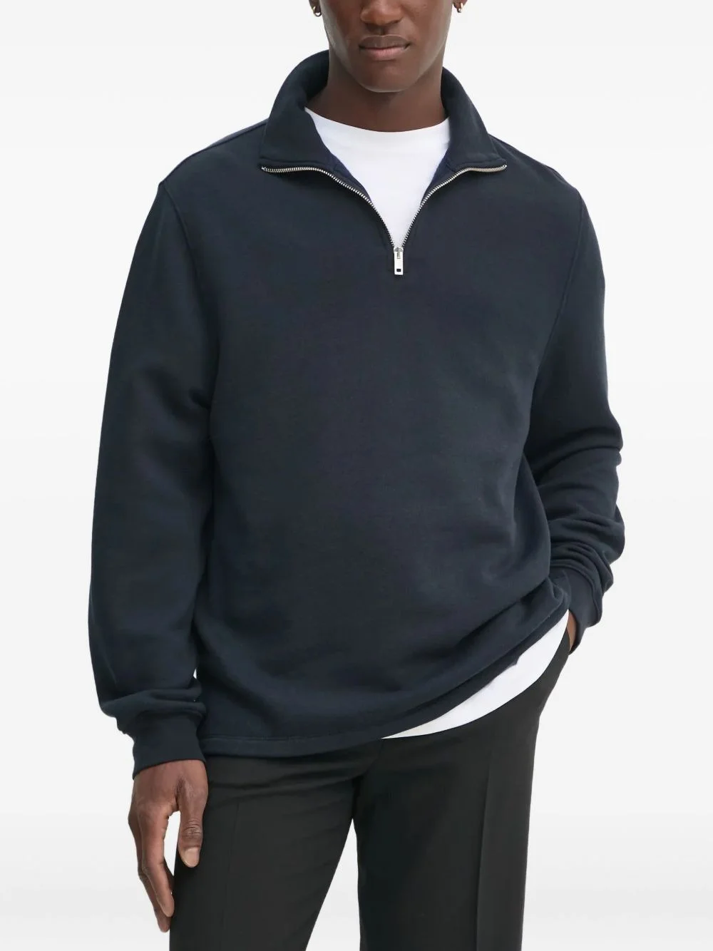 high-neck zip-up sweatshirt Highlights - Navy blue - Half zip fastening - High neck - Long sleeves - Relaxed fit - Straight hem Imported Composition Cotton 60%, Lyocell 40% Washing instructions Read Manufacturer Guidelines