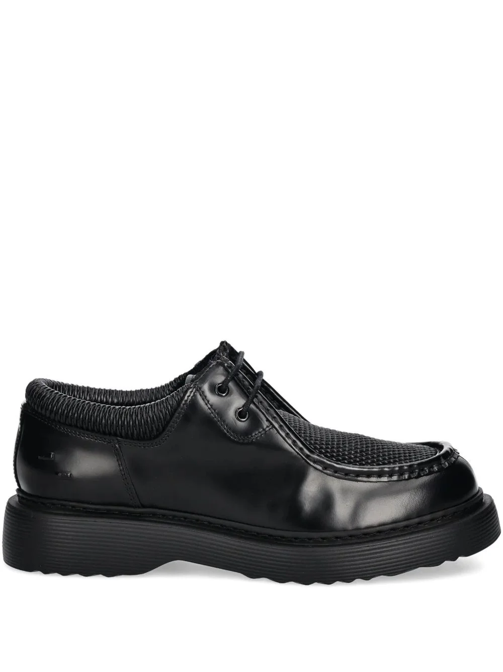 leather derby shoes Highlights - Black - Drawstring fastening - Moc stitching - Padded ankle - Rubber sole Imported Composition Outer: Calf Leather 100%, Fabric 100% Sole: Rubber 100% Lining: Fabric 100%