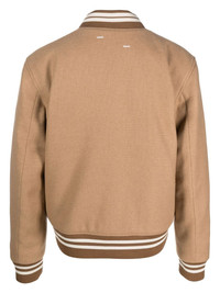 logo-patch bomber jacket camel brown wool blend ribbed detailing logo patch at the chest front press-stud fastening long sleeves two front welt pockets straight hem Imported Composition Lining: Polyester 100% Outer: Wool 60%, Polyester 30%, Polyamide 10% Washing instructions Dry Clean Only