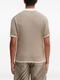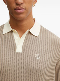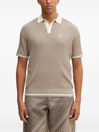 ribbed embroidered-detail polo shirt Highlights - Beige - Ribbed design - Embroidered detail - Polo collar - Short sleeves - Button fastening Imported Composition Cotton 100% Washing instructions Read Manufacturer Guidelines