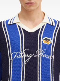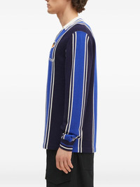 striped polo-neck sweater Highlights - Blue - Stripes - Ribbed knit - Embroidered logo - V-neck collar Imported Composition Viscose 72%, Polyester 28% Washing instructions Read Manufacturer Guidelines