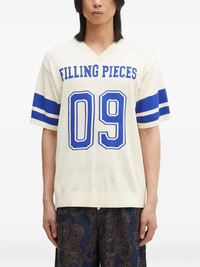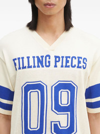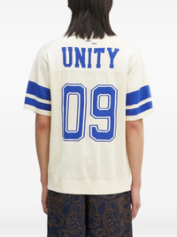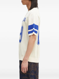 v-neck logo-print T-shirt Highlights - White - V-neck - Short sleeves - Blue stripes - Logo print Imported Composition Viscose 72%, Polyester 28% Washing instructions Read Manufacturer Guidelines