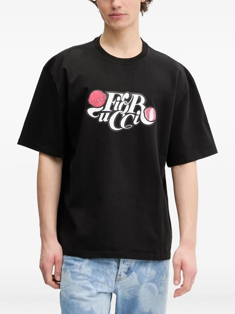 logo-print T-shirt Highlights - Black - Short sleeves - Crew neck - Logo print - Lollipop-print detail Imported Composition Cotton 100% Washing instructions Read Manufacturer Guidelines