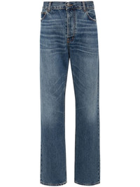 mid-rise bootcut jeans Highlights - Blue - Cotton - Denim - Whiskering effect - Mid-rise - Bootcut - Front button and zip fastening - Belt loops - Classic five pockets - Logo patch to the rear - When buying this unisex item, keep in mind that it is graded in standard men's sizing. Made in Italy Composition Cotton 100%