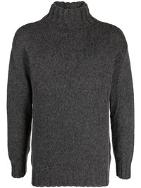 high-neck ribbed jumper Highlights - Medium grey - Knitted construction - High neck - Long sleeves - Ribbed cuffs and hem - Straight hem Made in Italy Composition Wool 42%, Mohair 41%, Polyamide 17% Washing instructions Dry Clean Only