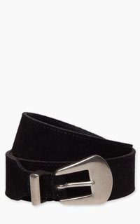 The Fortela Phoenix Suede Leather Belt in black is a standout accessory that brings a touch of sophistication to any outfit. Made from high-quality suede, it has a soft texture that sets it apart from traditional leather belts. The sleek black color makes it incredibly versatile, allowing it to pair effortlessly with both casual and formal attire. What makes this belt special is its craftsmanship—it's made in Italy, reflecting Fortela's commitment to artisanal quality. The subtle matte finish and understated buckle design add to its elegance without being overly flashy. After some wear, the suede will develop a unique patina, enhancing its character. Whether you’re wearing it with tailored trousers or your favorite jeans, the Fortela Phoenix belt is sure to elevate your look with a touch of refined style. - Style: Phoenix - Color: Black - Material: 100% leather - Made from high-quality italian suede leather - Matt silver western buckle - Sand suede finish - Width: approx. 3,4cm - Buckle width: approx. 4,0cm - Handmade in Italy