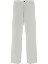 cotton straight-leg trousers Highlights - White - Cotton - Denim - Front button and zip fastening - Belt loops - Two side slit pockets - Two rear flap pockets - Logo patch to the rear - Straight leg Made in Italy Composition Cotton 100% Washing instructions Read Manufacturer Guidelines