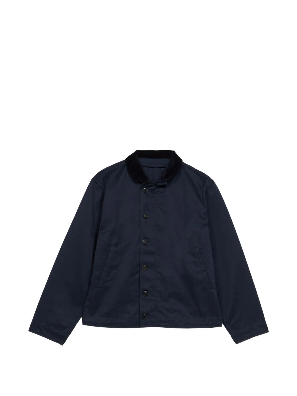 Deck herringbone corduroy-collar jacket Highlights - Blue - Herringbone weave - Corduroy collar - Button closure - Long sleeves Made in Italy Composition Cotton 100% Washing instructions Read Manufacturer Guidelines