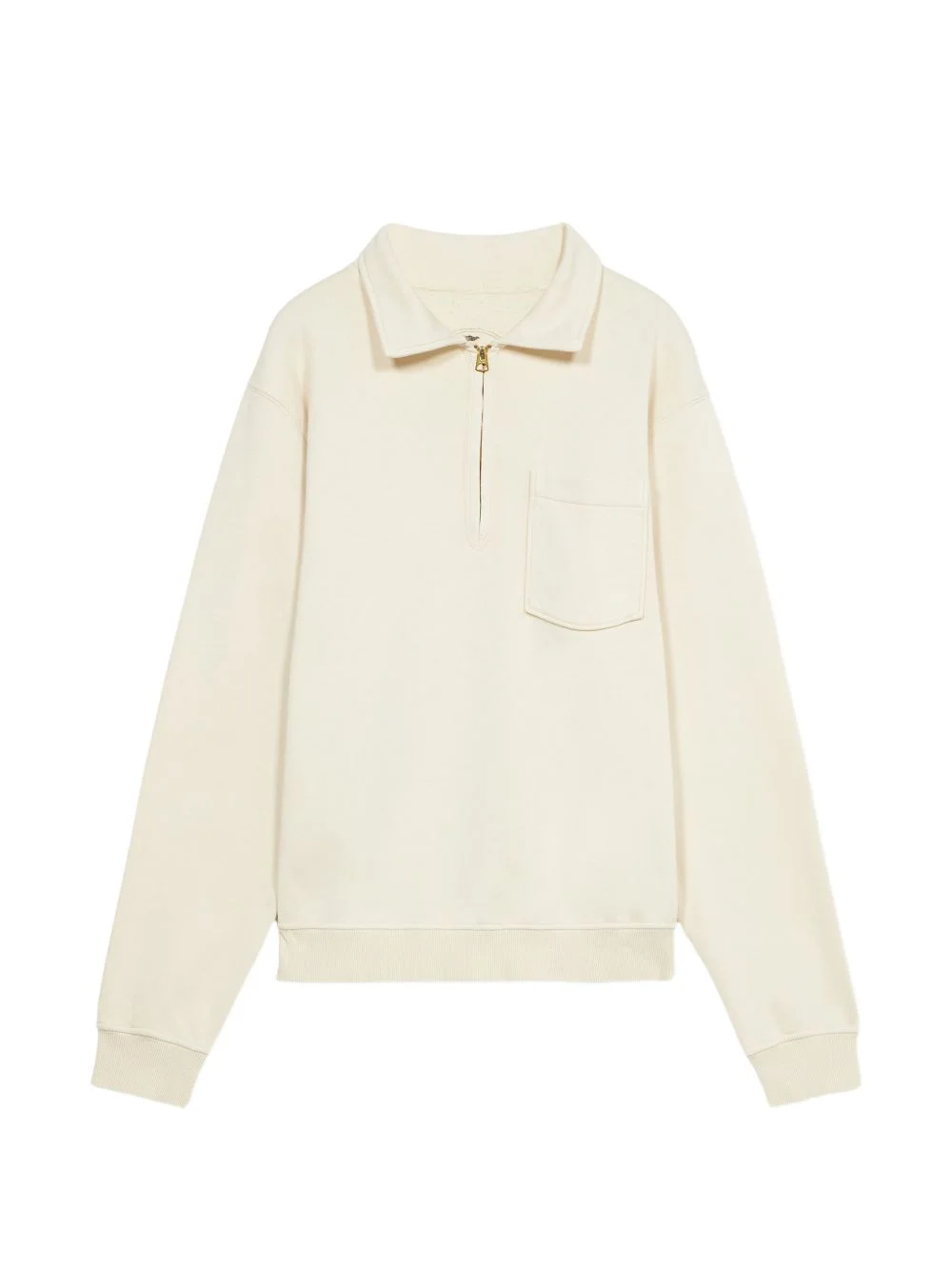 woven zip-up sweatshirt Highlights - Ecru - Woven - Zip fastening - Collar - Chest pocket - Ribbed hem Made in Italy Composition Cotton 100% Washing instructions Read Manufacturer Guidelines