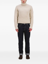 stitch jeans Highlights - Blue - Yellow topstitching - Leather patch - Five-pocket styling - Button fly - Straight leg Made in Italy Composition Cotton 100%