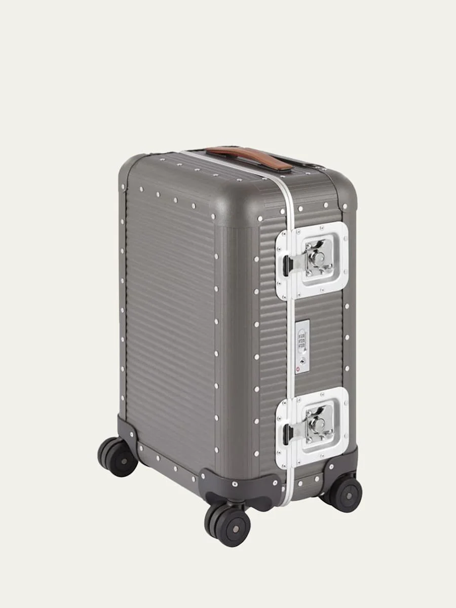 Ideal for two to three day journeys Hard-sided luggage crafted of aluminum, leather, and polyester Approx. 16"W x 10"D x 22"T Top handle Butterfly closures Side handle Integrated TSA lock Four dual wheels Interior removable padded lining Interior mesh pocket Interior shirt holder Interior straps Item Weight: 12.0 lbs Lining: Polyester Trim: Leather Made in Italy Online Inquiries: BGS21_HG329| Store Inquiries: #4633211