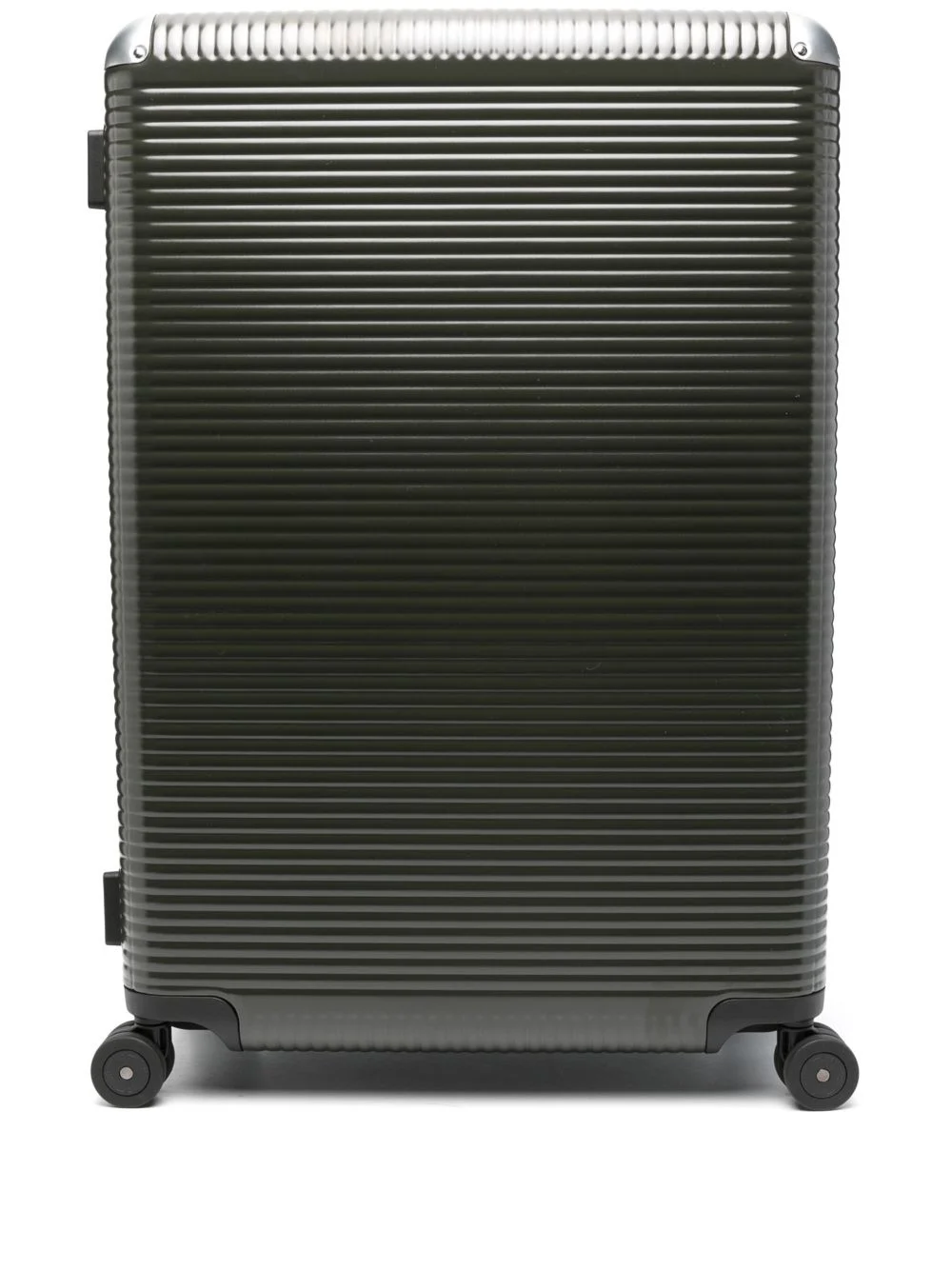 Bank Light Trunk On Wheels L suitcase Highlights - Moss green - Wide ribbed - Bi-fold design - Two maxi butterfly locks - Combination lock - Single flat top handle - Single flat side handle - Telescopic handle - Four wheels - Full lining - Internal logo patch - Internal buckle-fastening straps - Internal zip-fastening pocket - Partitioned compartment - Silver-tone hardware Imported Composition Outer: Polycarbonite 100% SIZE & FIT Measurement DEPTH 13.38 in(34 cm) HANDLE 0.39 in(1 cm) HEIGHT 32.28 in(82 cm) WIDTH 20.47 in(52 cm)