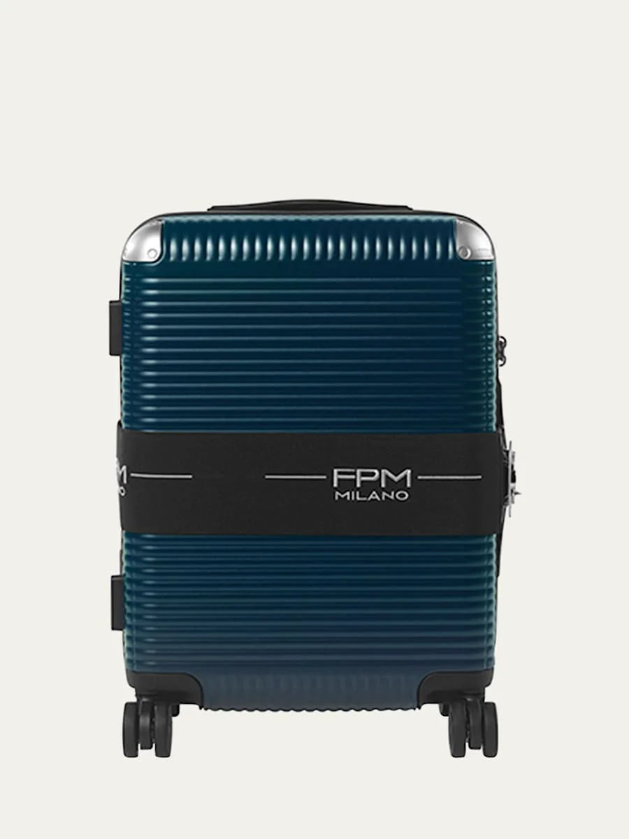 Bank Zip Deluxe was created for lightness and practicality and is distinguished by its zip closure. The elastic band with an embroidered logo closes with the iconic aluminum butterfly lock, the ever-present signature of the brand. Leather handles, aluminum corners, and four dual wheels guarantee easy and effortless movement. Designed by Marc Sadler and features his signature on the bottom Iconic and impact-resistant external wave texture Aluminum-reinforced corners and rivets Telescoping top handle Leather top and side handles Water-resistant external coated zipper TSA-approved combination lock Four dual-spinner wheels Italian leather details Interior nylon compression straps and practical divider Removable soft lining Approx. 18.1"W x 10.6"D x 26.7"T Item Weight (Lbs.): 10.4 Body: Polycarbonate Lining: Polyester Trim: Leather Spot clean Made in Italy Online Inquiries: BGS21_HGG5A| Store Inquiries: #4796811