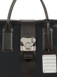 butterfly-buckle briefcase Highlights - Black - Two top handles - Buckle fastening - Zip closure - Silver-tone hardware Imported Composition Outer: Nylon 90%, Calf Leather 10% Lining: Polyester 100% SIZE & FIT Measurement HEIGHT 11.81 in(30 cm) WIDTH 15.74 in(40 cm)