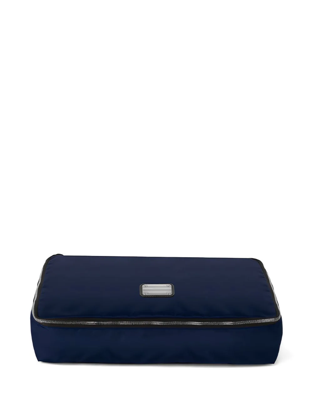 Cube Box L zip packing bag Highlights - Indigo blue - Zip closure - Logo detail Made in Italy Composition Outer: ECONYL® 95%, Calf Leather 5% SIZE & FIT Measurement DEPTH 12.2 in(31 cm) HEIGHT 3.93 in(10 cm) WIDTH 16.53 in(42 cm)