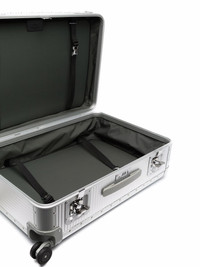 Bank S Spinner 76cm studded aluminum suitcase Highlights - Moonlight silver-tone - Aluminum/leather - Stud embellishment - Silver-tone hardware - Leather trim - Telescopic handle - Butterfly clasp fastening - Combination lock - Partitioned compartment - Removable lining - Internal zip-fastening pocket - Four wheels Imported Composition Metal (Other) 100% SIZE & FIT Measurement DEPTH 11.22 in(28.5 cm) HANDLE 1.96 in(5 cm) HEIGHT 29.52 in(75 cm) STRAP 11.81 in(30 cm) WIDTH 19.29 in(49 cm)