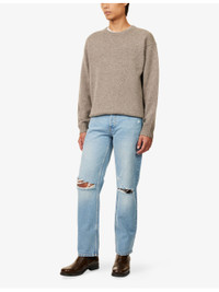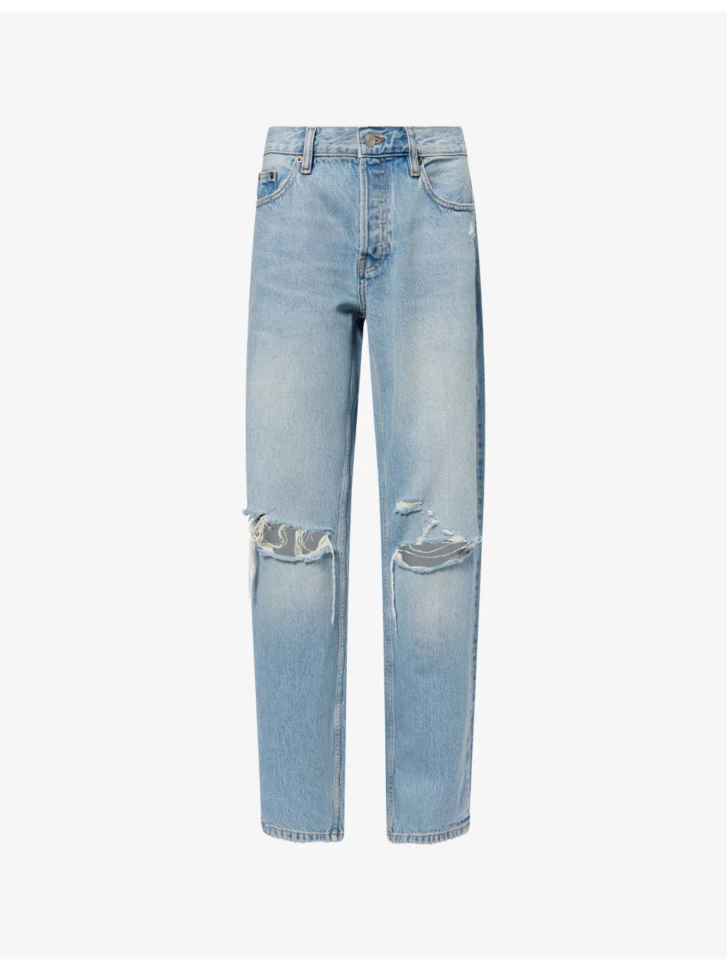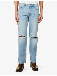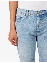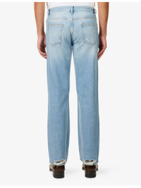PRODUCT DETAILS - Frame dennim jeans - 100% cotton - Button and zip-fly fastening - Straight leg, mid-rise, belt loops, five pockets, all-over contrast top stitching, mid wash, frayed hems - Machine wash cold - Model is 6ft 2in/1.88m and wears a size UK 30 - Midweight, non-stretch Ref: R04510315