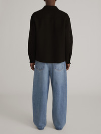 This polished jacket is woven from two layers of wool to ensure an identical look and feel on the inside and outside. A modern and refined take on the classic trucker jacket. DETAILS - Dry Clean Only - 100% Wool - 28" Long From Shoulder - MP26WJA008-BLK