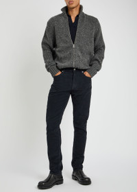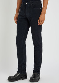 Info & Care Frame;corduroy trousers Belt loops,;three front slip pockets, two back patch pockets Partially concealed zip and button fastening at front 98% cotton, 2% elastane Machine wash cold Size & Fit Inside leg length: 32 inches/ 81.5cm Midweight Tapered, slim-leg cut Model is 6'1"/ 185cm and wears a size;W32