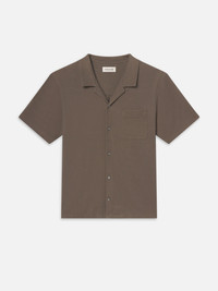 Premium textured cotton elevates a menswear staple to FRAME's level of luxury. The short-sleeved shirt has a relaxed fit that falls freely, transitioning from day to night with a classic collar, chest pocket and button front. Materials & Care Machine Wash Cold 100% Cotton 27.5" Long From Shoulder MS25JTE009-DSAG