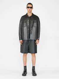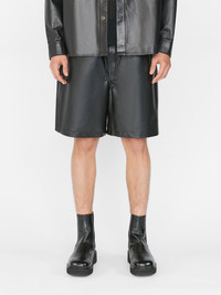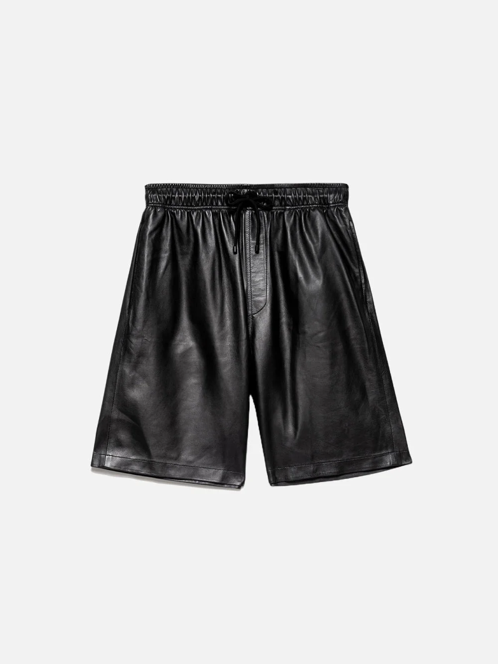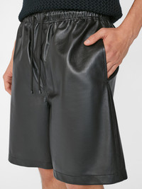 Reinvented in 100% leather, this iconic street-style silhouette elevates your look for everyday style and dressed-up occasions—particularly when paired with the matching button-up shirt. Featuring a drawstring waist and side pockets for polished fit and functionality. Materials & Care 100% Lamb Leather Clean Professionally By A Leather And Suede Specialist 13.5" Front Rise/8" Inseam/28" Leg Opening LMLT0158-NOIR Fit Model is 6'1" Tall/185cm and is wearing a US Size M