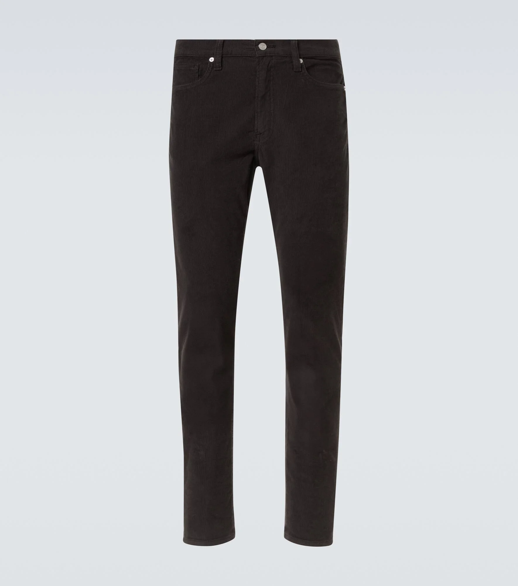 Frame creates iconic designs using fair manufacturing practices and sustainably sourced materials. Crafted from cotton corduroy, the L'Homme Slim pants feature a slim, tapered leg and a mid-rise silhouette. Product Details - Material: 98% cotton, 2% elastane - Care instructions: machine wash at 30 degrees - Made in Mauritius - Designer color name: Titanium - Item color: gray - Closure: zipper fly, button fastening - Pockets: five pockets - Belt loops - Item number: P01081242 Size & Fit - True to size - Non-stretchy fabric - Slim-leg - Mid-rise - Height of model is 188cm-74" and wears a size 32