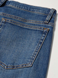 FRAME takes its design cues from London and draws its manufacturing expertise from Los Angeles. In a blue wash, with slight distressing on the pockets, these jeans have an understated, broken-in feel that makes them perfect all-rounders. Size & Fit - Fits true to size. Take your normal size - Slim-cut, mid-rise style - Mid-weight, stretchy fabric - Model is shown wearing a 32 - Model measures: waist size 32, height 6'2"/ 188cm Details & Care - Blue denim - Button and zip fastenings - 95% cotton, 4% polyester, 1% Lycra - Machine wash