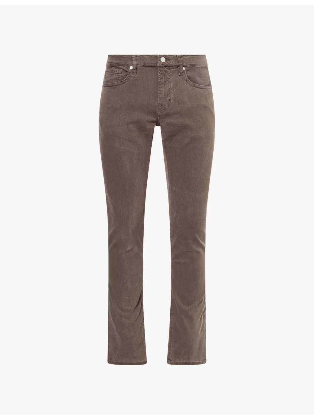 PRODUCT DETAILS - FRAME stretch-denim jeans - 74% lyocell, 17% rayon, 7% elastane, 2% elasterell-p - Button and zip-fly fastening - Slim fit, mid-rise, tapered leg, belt loops, five pockets, branded hardware, soft-brushed texture, partially lined - Machine wash cold - Size UK 30: rise 9in / 23cm, inside leg 32in / 81cm, leg opening 14in / 36cm - Model is 6ft 2in/1.88m and wears a size UK 30 - Midweight, slight stretch Ref: R04554805