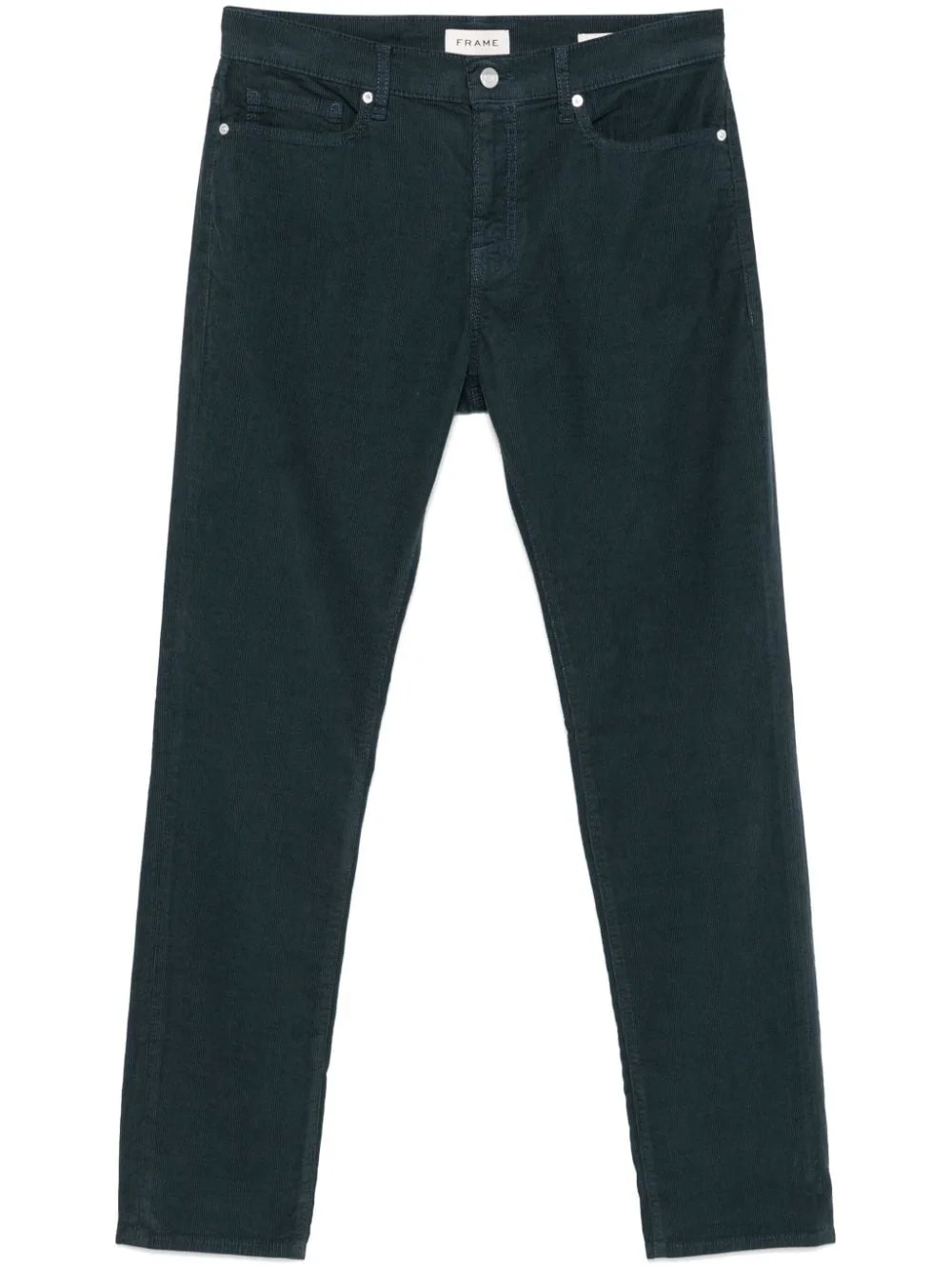 L'Homme trousers Highlights - Navy blue - Cotton blend - Corduroy - Concealed fly and button fastening - Belt loops - Mid-rise - Classic five pockets - Slim cut - Tapered leg Imported Composition Cotton 98%, Spandex/Elastane 2% SIZE & FIT Model measurements Height 6 ft 2 in(1.88 m) Bust/Chest 36.61 in(93 cm) Hips 35.82 in(91 cm) Waist 27.95 in(71 cm) FittingInformation Designed for a slim fit, offering a comfortable fit that sits just away from the leg Made from a midweight stretch fabric, this piece offers elasticity and flexibility when worn