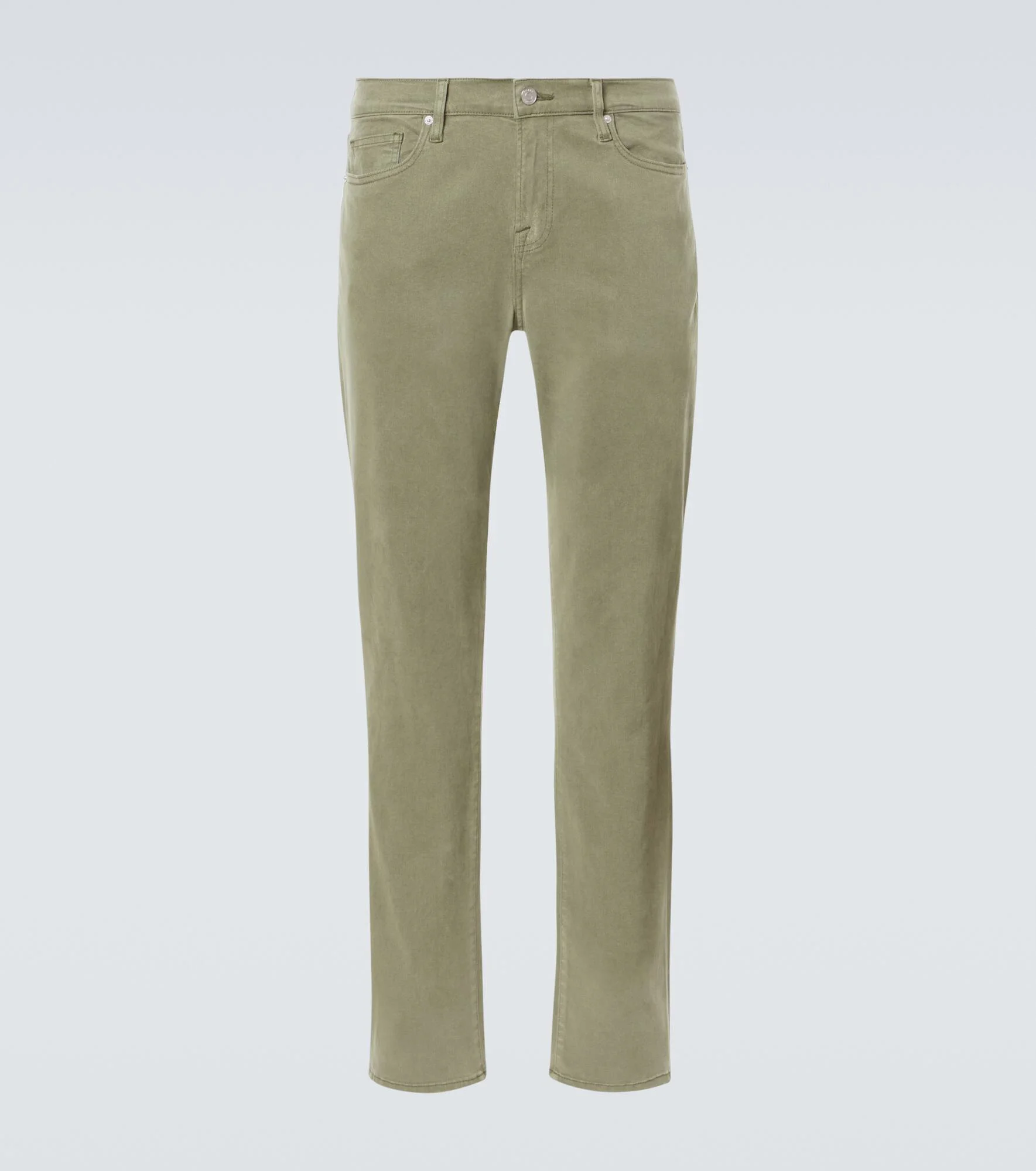 Frame creates iconic designs using fair manufacturing practices and sustainably sourced materials. Crafted from soft brushed twill, the L'Homme pants are cut to a slim silhouette and feature a mid-rise fit. Product Details - Material: 74% lyocell, 17% modal, 7% elastomultiester, 2% elastane - Care instructions: machine wash at 30 degrees - Made in Mauritius - Designer color name: Washed Military - Item color: green - Hardware color: silver - Belt loops - Pockets: five pockets - Closure: zipper fly, button fastening - Item number: P01110456 Size & Fit - True to size - Slightly stretchy fabric - Slim-leg - Mid-rise - Height of model is %cm%cm-%inch%" and wears a size 32