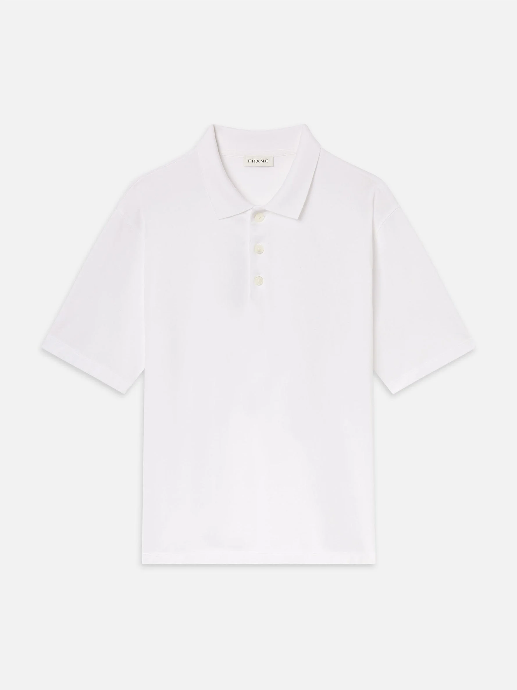 Polos are the piece editors can't stop talking about. This one is stripped back and sharply cut in breathable cotton pique, with a smooth hand feel and just enough structure. An everyday essential with editorial credibility. Materials & Care Machine Wash Cold 100% Cotton 27.25" Long From Shoulder ME25JTE002-WHT