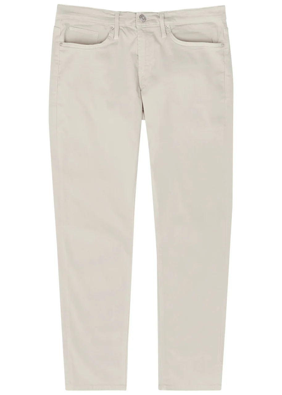 INFO & CARE - Frame stretch-denim jeans - Mid-rise fit, slim-leg cut, belt loops, five pockets - Partially concealed zip and button fastening at front - 74% Lyocell, 17% rayon, 7% elasterell-P, 2% elastane - Machine wash cold inside out to avoid colour transfer SIZE & FIT - Front rise: 9.5 inches/ 24cm - Inside leg length: 31 inches/ 79cm - Midweight - Model is 6'1"/ 185cm and wears a size UK W32