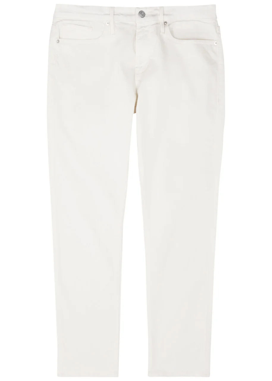INFO & CARE - Frame stretch-denim jeans - Mid-rise fit, slim-leg cut, belt loops, five pockets - Partially concealed zip and button fastening at front - 93% organic cotton, 5% elasterell-P, 2% elastane - Machine wash cold inside out to avoid colour transfer SIZE & FIT - Front rise: 10 inches/ 25.5cm - Inside leg length: 31.5 inches/ 80cm - Midweight - Model is 6'1"/ 185cm and wears a size UK W32