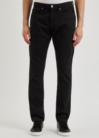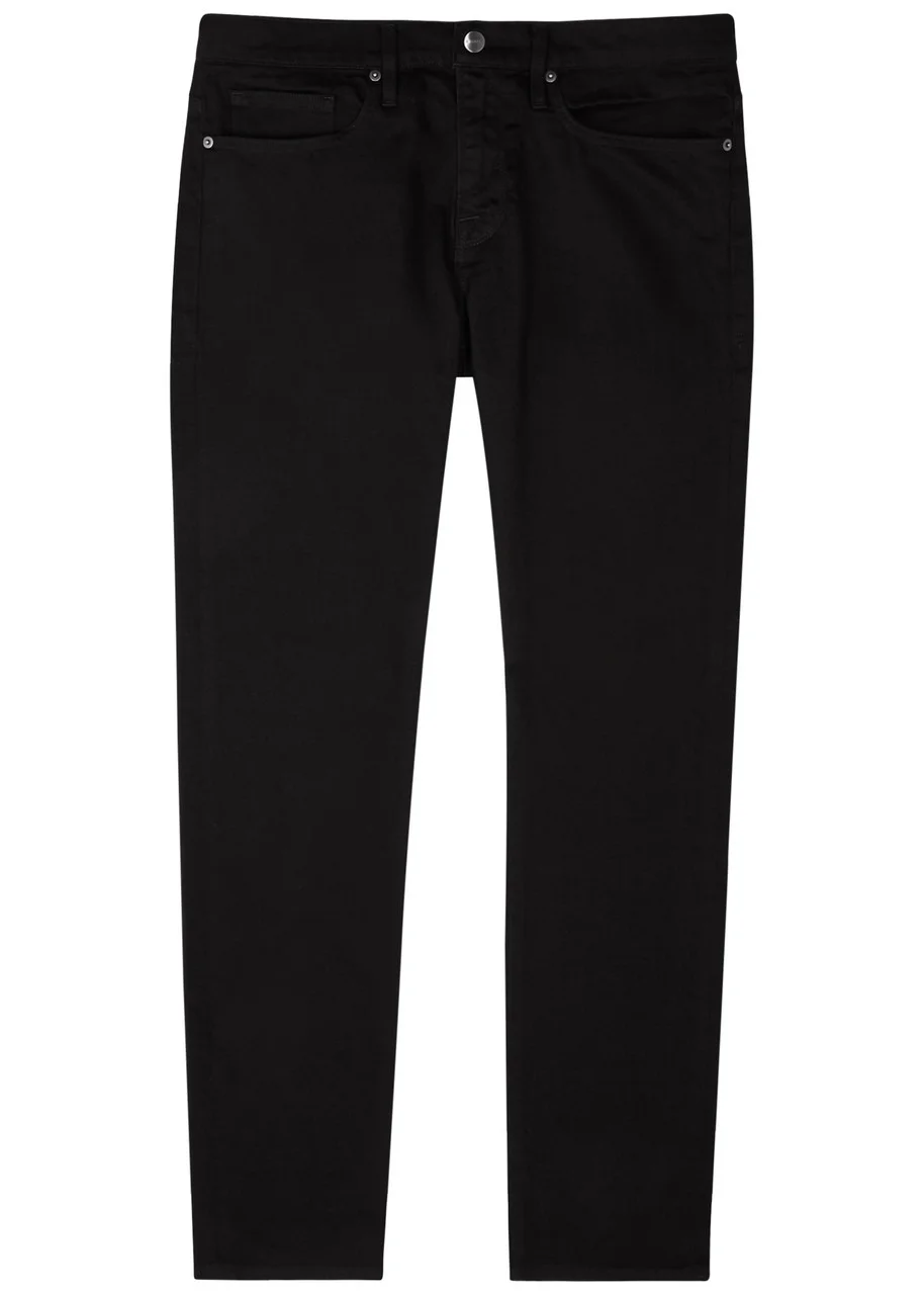 INFO & CARE - Frame stretch-denim jeans - Mid-rise fit, slim-leg cut, belt loops, five pockets, stud embellishments - Partially concealed zip and button fastening at front - 94% cotton, 5% polyester, 1% elastane - Machine wash cold inside out to avoid colour transfer SIZE & FIT - Front rise: 10 inches/ 25.5cm - Inside leg length: 32 inches/ 81.5cm - Midweight - Model is 6'1"/ 185cm and wears a size UK W32