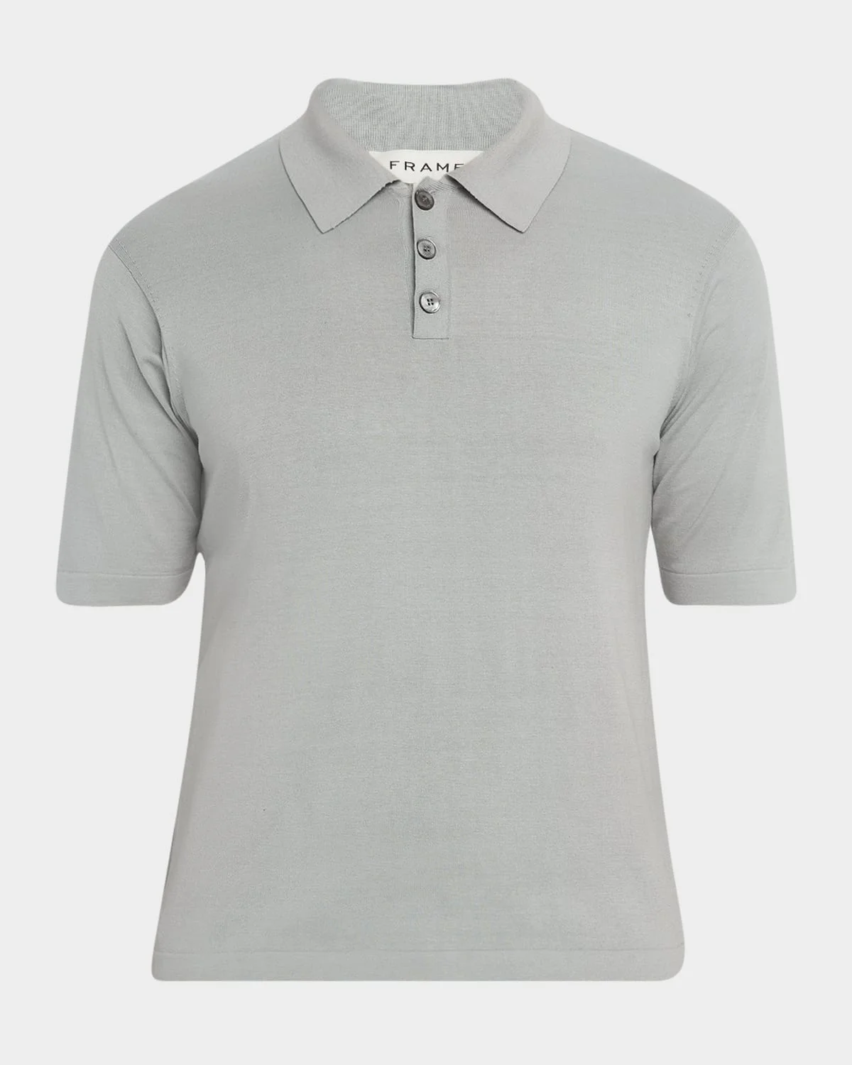 - FRAME solid polo sweater - Spread collar; three-button placket - Short sleeves - Relaxed fit - Pullover style - Silk/cotton - Dry clean - Imported