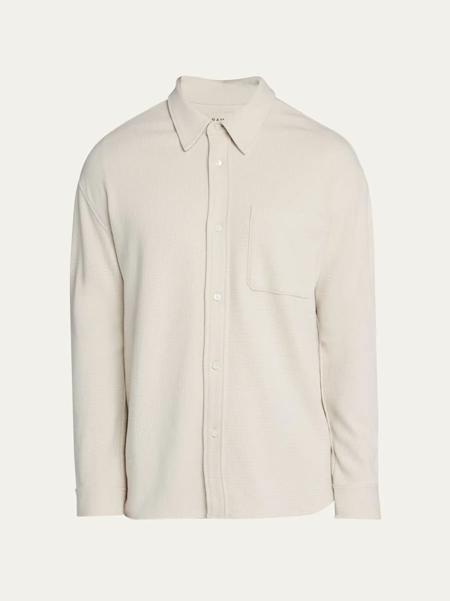 FRAME buttondown shirt in breathable cotton, displaying an intricate waffle texture Point collar Button placket Chest pocket Long sleeves Singlebutton cuffs Back yoke Rounded hem Cotton Imported