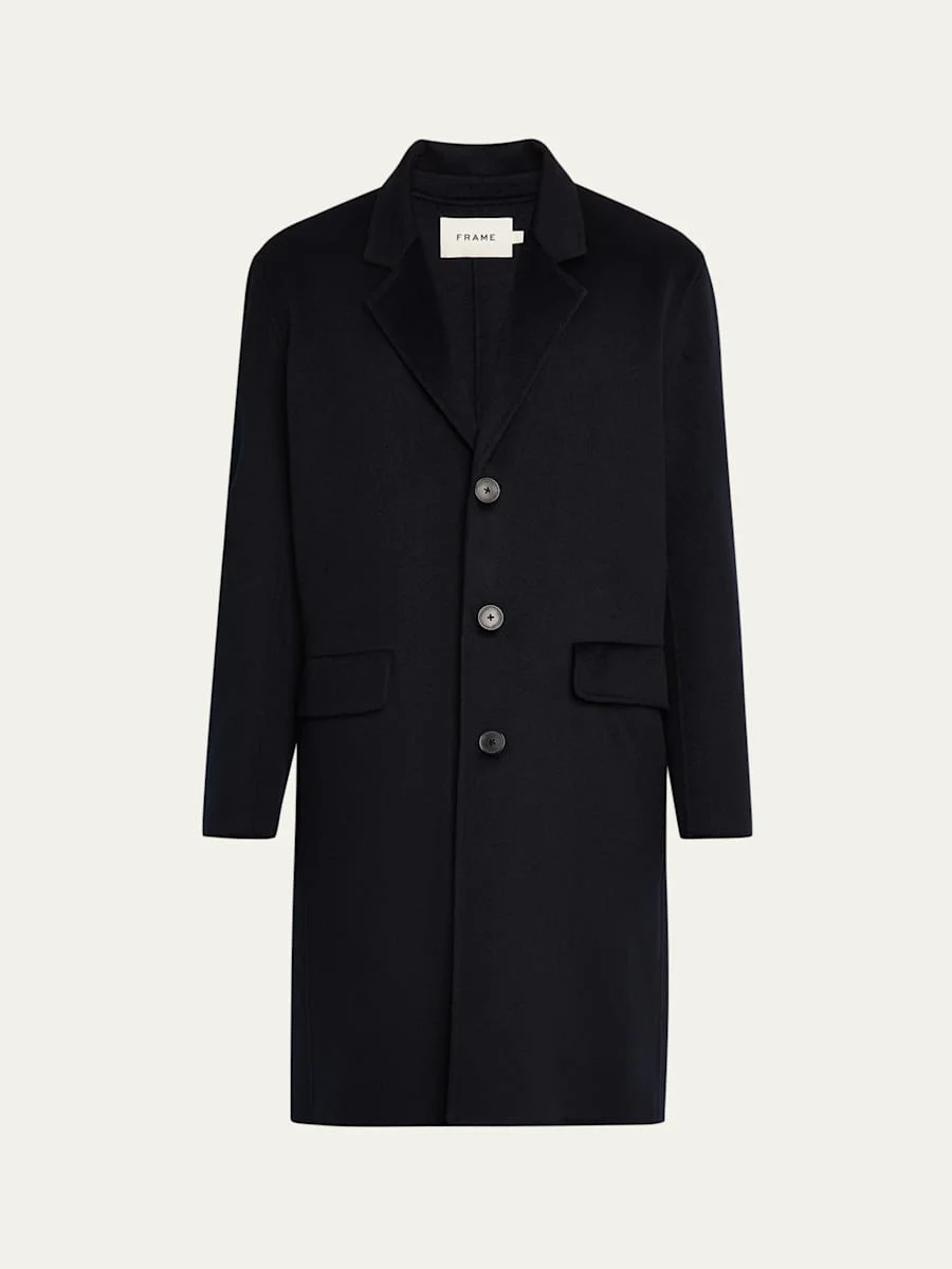FRAME overcoat in double-faced wool for luxurious warmth Notched lapels Button front Hip flap pockets Long length Single-vented back Wool Dry clean Imported Online Inquiries: BGS21_NDSSQ| Store Inquiries: #5078694