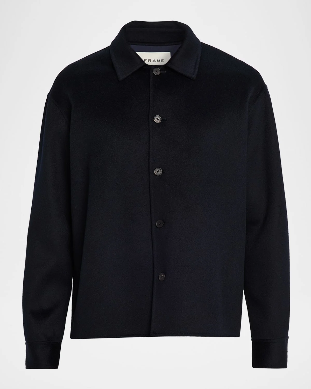 - FRAME overshirt in double-face wool - Spread collar - Button closure - Dropped shoulders - Long sleeves with buttoned cuffs - Yoked back shoulders - Dry clean - Imported - Model is 6'1"/185cm.