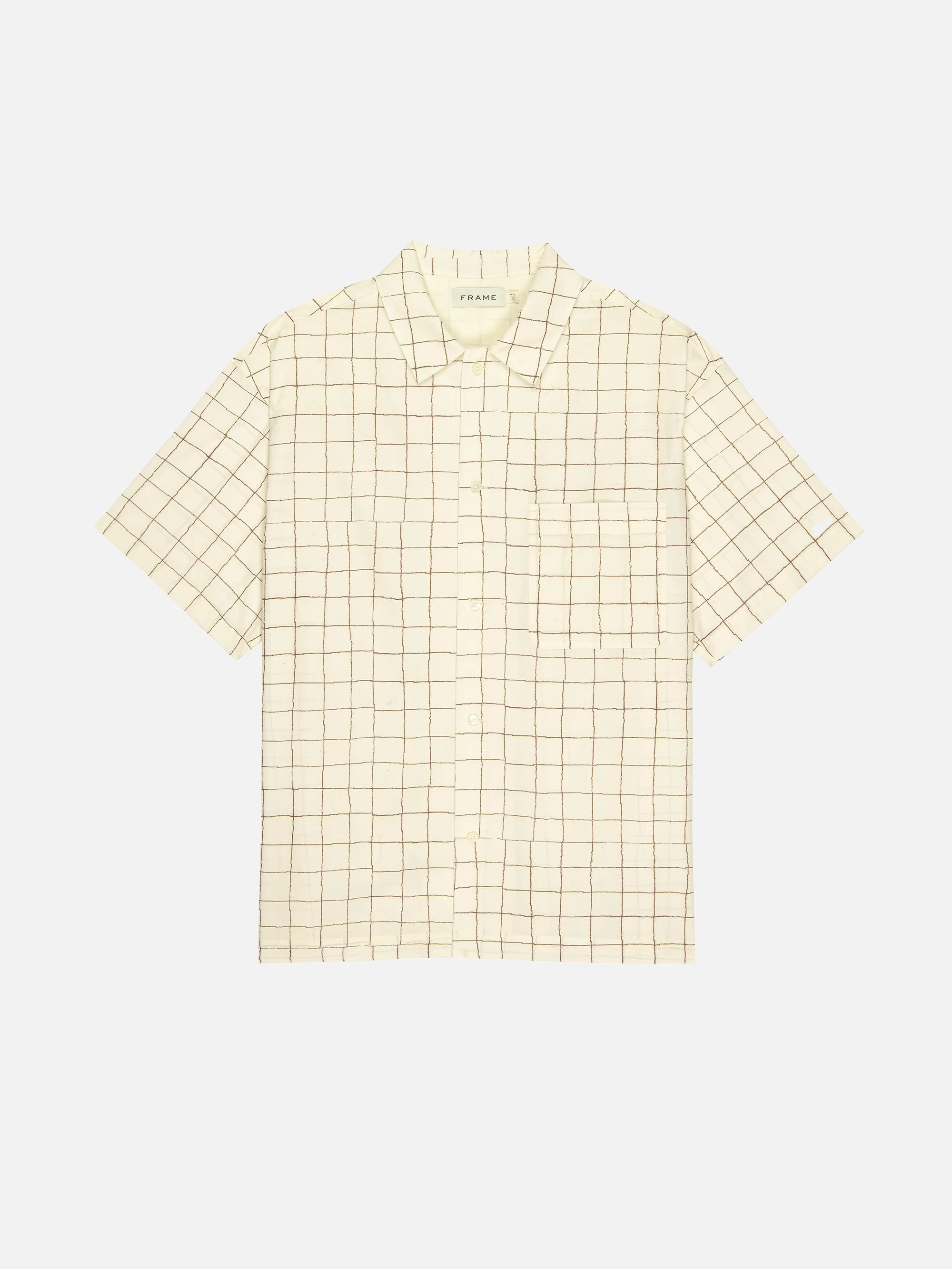 Tailored in a breathable cotton paired with a classic check print, this short sleeve shirt deserves a mainstay place in your wardrobe. Light in weight, heavy on impact, it's a reliable piece that elevates whatever you wear it with. DETAILS - Machine Wash Cold - 100% Cotton - 27.5" Long From Shoulder - ME25WSH031-CREM