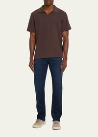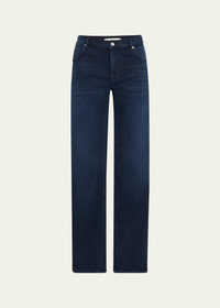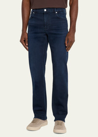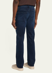 FRAME "Jetset" jeans in light-wash denim Regular rise Five-pocket style Modern fit through straight legs Full length Button-zip front; belt loops Cotton/polyester/elastane Machine wash cold Imported Model is 6'1"/185cm. Online Inquiries: BGS21_NCMKL| Store Inquiries: #4919388