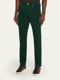 FRAME "L'Homme" pants in a solid stretch fabric Approx. 10" rise; 33" inseam; 14" legopening Regular rise Fivepocket style Full length Slim fit through straight legs Button/zip fly; belt loops Lyocell/modal/elasterellp Machine wash cold, lay flat to dry Imported