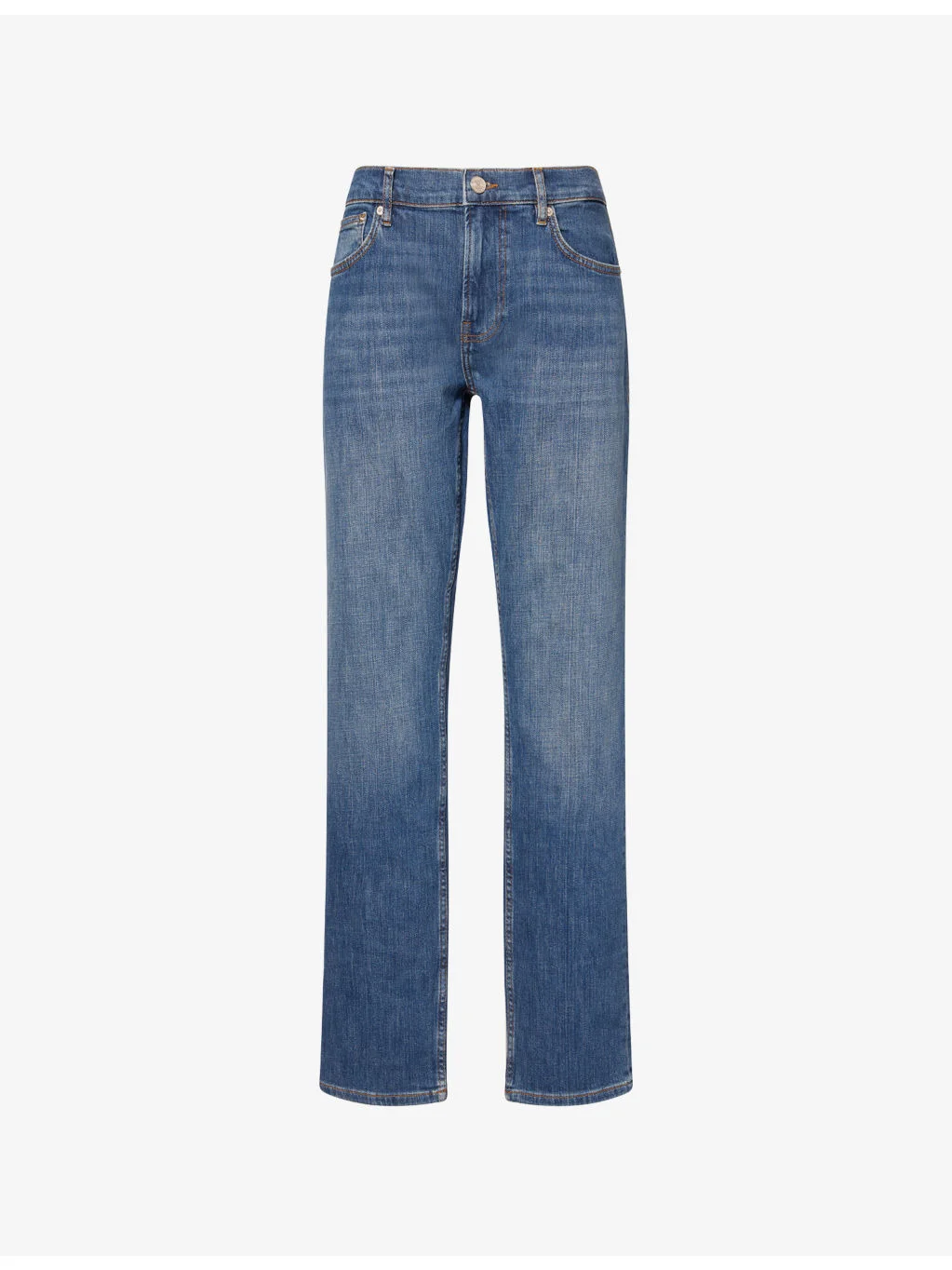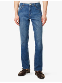 PRODUCT DETAILS - FRAME stretch denim jeans - 94% cotton, 5% polyester, 1% elastane - Button and zip-fly fastening at front - Straight leg, mid-rise, belt loops, five pockets, all-over contrast top stitching, all-over washed effect - Machine wash cold - Made in Turkey - Size UK 30: rise 10.2in / 26cm, leg length 32.6in / 83cm, leg opening 14.9in / 38cm - Model is 6ft 2in/1.88m and wears a size UK 30 - Midweight, stretchy Ref: R04400146