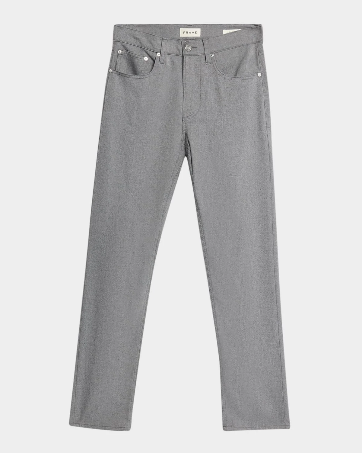 These modern straightfit pants by FRAME feature a faded grey wash and a hint of stretch for allday comfort Regular rise Fivepocket style Full length Slim fit through straight legs Button/zip fly; belt loops Viscose/elastane Machine wash cold Imported