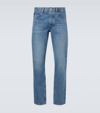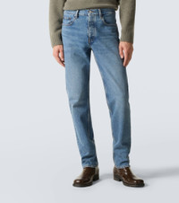 Frame creates iconic denim designs using fair manufacturing practices and sustainably sourced materials. Made from cotton, these mid-rise jeans come in a straight silhouette with classic five pockets. Product Details - Material: 100% cotton - Care instructions: machine wash at 30 degrees - Made in Tunisia - Designer color name: Outfield - Item color: blue - Closure: buttoned placket - Pockets: five pockets - Belt loops - Item number: P01122656 Size & Fit - True to size - Non-stretchy fabric - Straight leg - Mid-rise - Height of model is 189cm-74.5" and wears a size 32