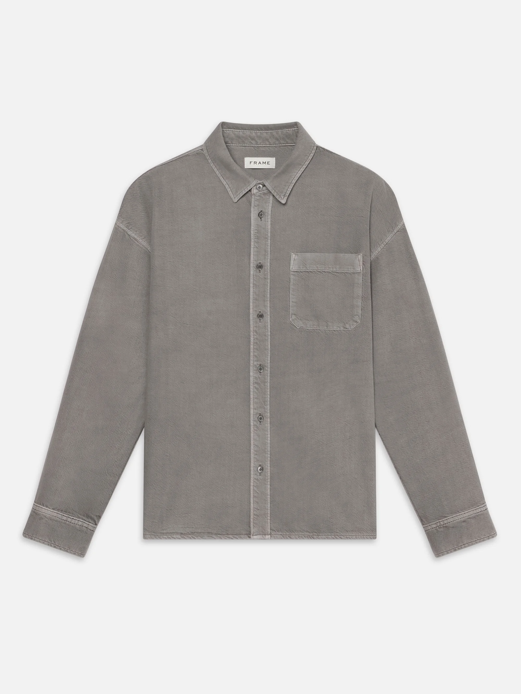 Built like a shirt, wears like a jacket. This relaxed layer has a washed-in softness and structured feel that holds its shape. Finished in Storm Grey—a muted tone with a lived-in edge. Materials & Care Machine Wash Cold 61% Cotton/39% Tencel 29" Long From Shoulder M023DWT182-SMGY