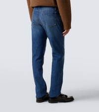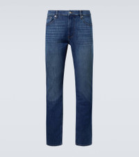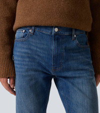 Frame creates iconic denim designs using fair manufacturing practices and sustainably sourced materials. A timeless wardrobe staple, the Modern straight jeans feature classic five-pocket styling and a zip and button closure. Product Details - Material: 94% cotton, 5% polyester, 1% elastane - Care instructions: machine wash at 30 degrees - Made in Turkey - Designer color name: Verdie - Item color: blue - Hardware color: silver - Belt loops - Pockets: five pockets - Closure: zipper fly, button fastening - Item number: P01110454 Size & Fit - True to size - Slightly stretchy fabric - Straight leg - Mid-rise - Height of model is 189cm-74.5" and wears a size 32
