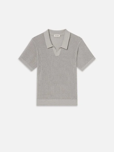 Crafted from a breathable wool blend, this open weave polo sweater is essential for spring and summer. Wear it with your favorite jeans or relaxed trousers for a take on modern prep. Materials & Care Dry Clean Only 30% RWS Wool/35% Viscose/35% Nylon 26" Long From Shoulder MS25KSW003-GYBL
