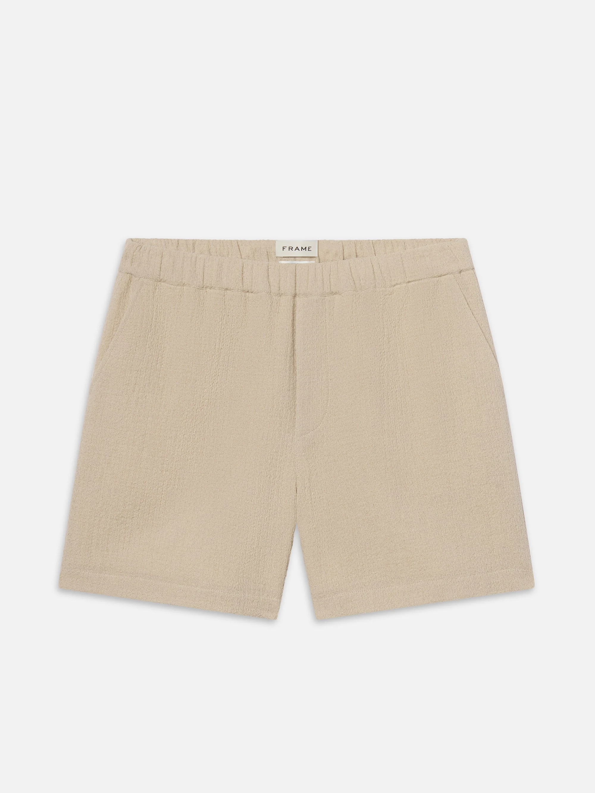 The Open Weave Shorts are crafted from a breathable cotton-blend fabric with subtle texture, featuring an elasticated waistband and back patch pocket for easy, relaxed wear. Designed to pair back with the matching Open Weave Short Sleeve Shirt for a complete look. DETAILS - Dry Clean Only - 60%Cotton/35%Polyester/5% Other Fibers - 11.5" Front Rise/5.5" Inseam/26.5" Leg Opening - MS26WST001-LTST